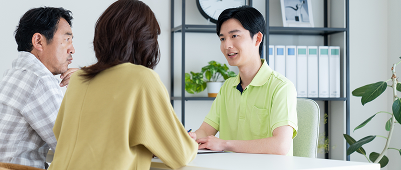 まずはお電話またはお問い合わせフォームからご連絡ください。 「介護保険について聞きたい」「退院後の生活が心配」など、どんな内容でもかまいません。